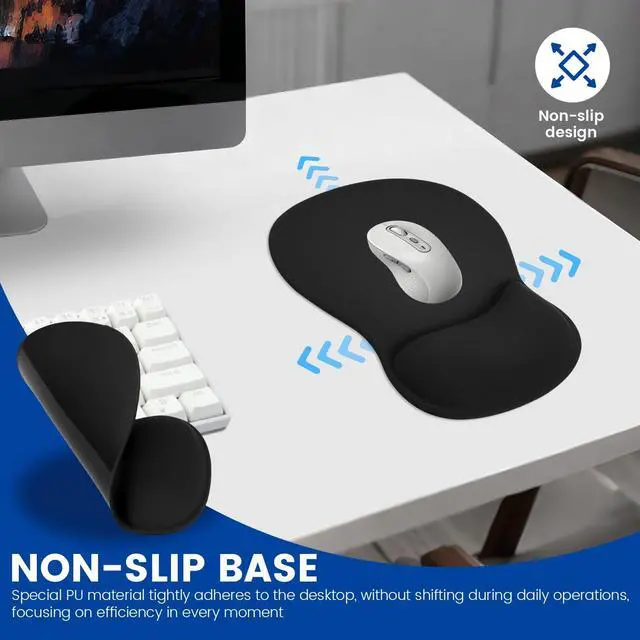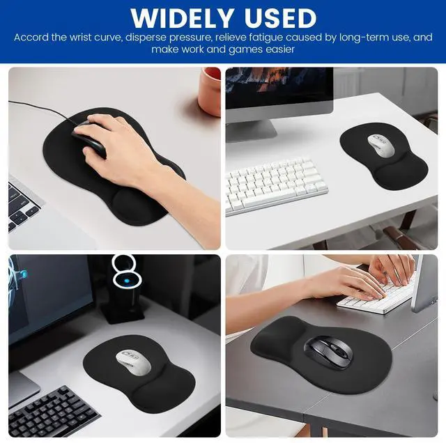 Description: This wrist rest has a soft, high resilience gel concave design that fits the wrist curve, relieves long use fatigue, and is softer and more supportive than regular rests. It comes with a wear resistant inner layer, non slip PU base, optimized size for stable support, and a high density fabric surface for smooth mouse use.