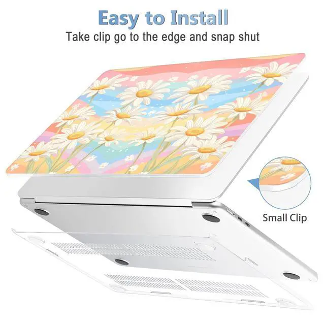 Mektron for 2025 MacBook Air 15 inch M4 Case A3241/ 2024 M3 A3114/ 2023 A2941 M2 Hard Printed Case with 15.3 Liquid Retina Display Touch ID, Plastic Hard Cover & Keyboard Skin- Colorful Daisy