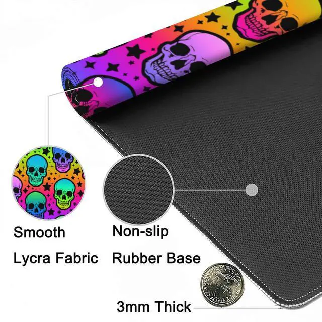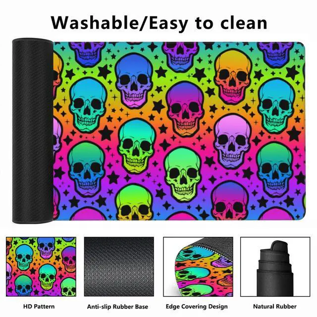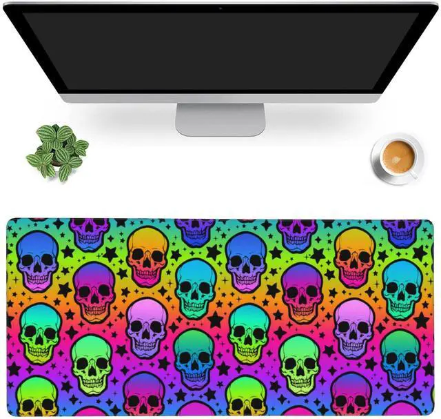 Craft With Edge Stitching To Prevent Fray, Deformation And Degumming ^^ Waterproof and Easy to CleanThe XL Gaming Mouse Pad With Waterproof Coating, Prevents Accidental Damage From Liquid Spillage Such As Water, Coffee, Juice. Ordinary Stains Can Be Wiped Cleanly With a Wet Towel, Easy To Clean Without Delaying Your Work Or Game ^^ Perfect Gift Idea Neon Skulls and Stars Desk Mat, Personalized Pattern Design. Using Advanced Printing Technology, Keep The Colors Bright And Not Easy To Fade. It Is Not Only a Mouse Pad But Also a Decorative Pad For The Desktop.