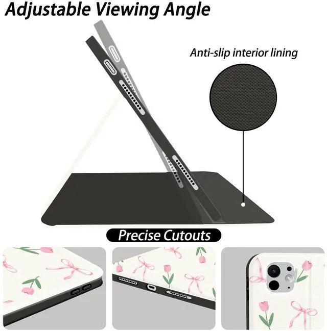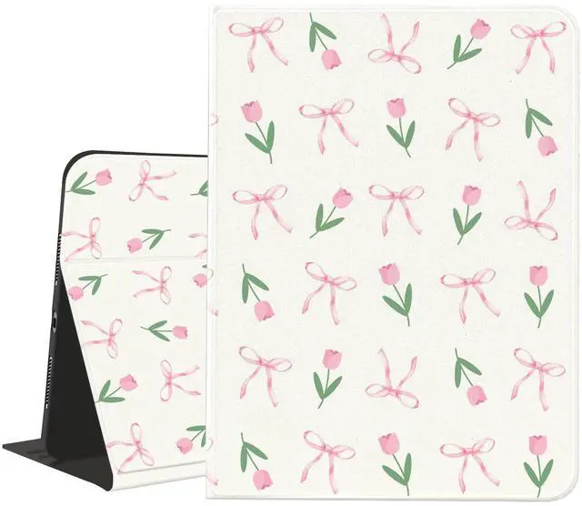 This cute bowknot and tulip flower case with pencil holder designed for iPad Mini 7/6, 8.3 Inch.