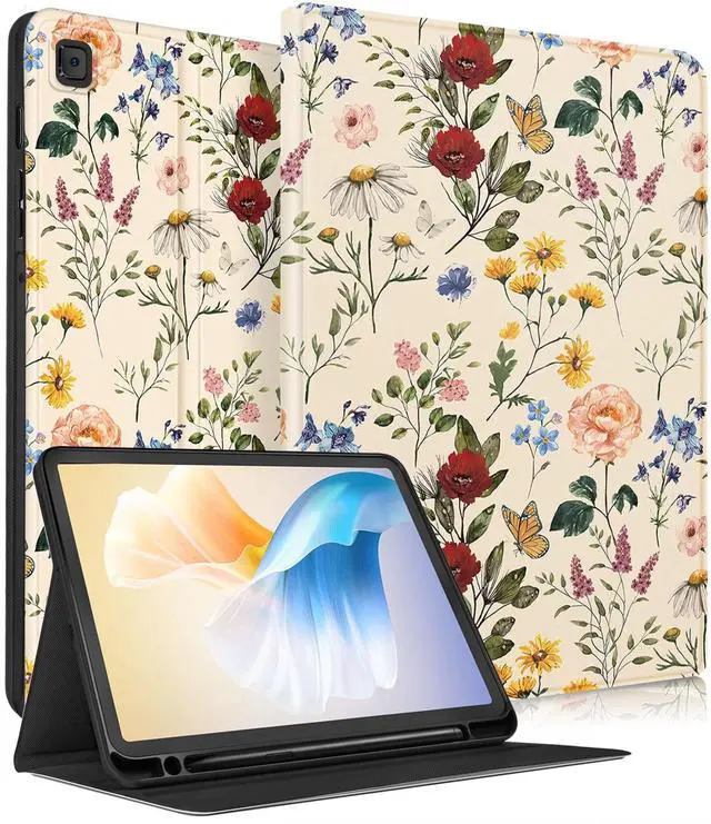 Uppuppy for Samsung Galaxy Tab S6 Lite Case 10.4 Inch Kids Cute Girls Flower Folio Women Girly Pretty Floral Kawaii Teen Aesthetic Tablet Cover for Samsung S6 Lite Tab Cases SM-P610/P613/P615/P619
