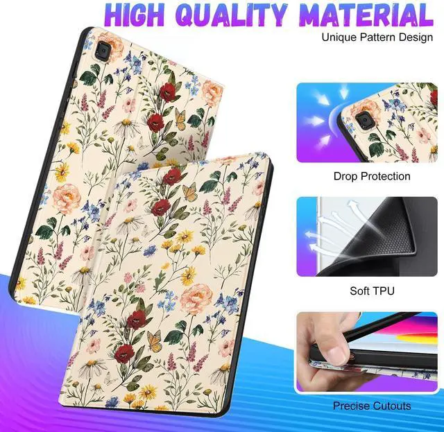 Full ProtectionThis for galaxy tab s6 lite case is made of premium durable PU leather and soft TPU. So this for samsung galaxy tab s6 lite 10.4 case is stain resistant, the high-definition printing process makes it less likely to fade. ^^ Auto Sleep/WakeBuilt-in magnetic strip, this for samsung s6 lite case with the smart funtion of auto sleep/wake, no wasting the power energy and extend your tablet standby time. ^^ Unique DesignThis for samsung tablet s6 lite case has multiple stylish designs, makes your tablet look more vivid and adurable, it is also a good choice for family and friends.