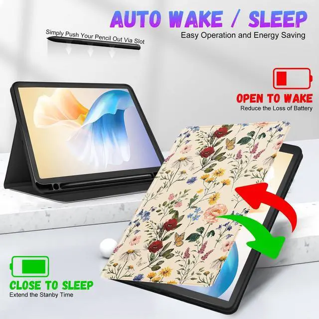 • Auto Sleep/WakeBuilt-in magnetic strip, this for samsung s6 lite case with the smart funtion of auto sleep/wake, no wasting the power energy and extend your tablet standby time.