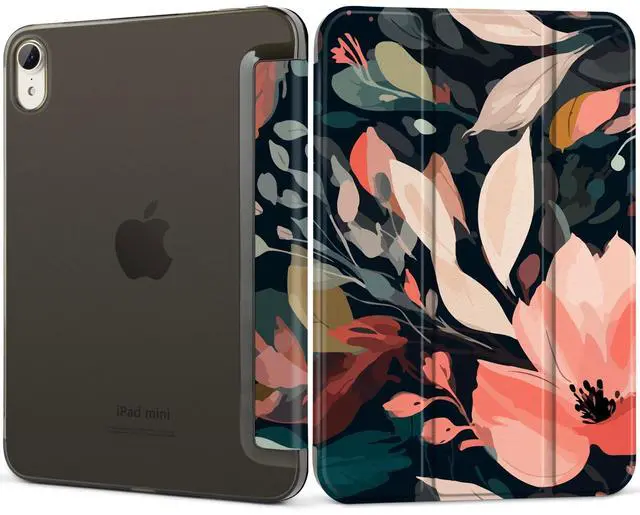 DONGKE for iPad mini 7 (A17 Pro) 2024 & iPad mini 6 2021 8.3 Inch, Slim Foldable Stand Hard PC Translucent Back Shell Smart Cover for iPad mini 7th/6th Generation [Auto Wake/Sleep] - Painted Florals