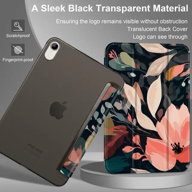 Compatibility -- Designed specifically for iPad Mini (A17 Pro) released in 2024 (Model numbers: A2993/A2995/A2996), iPad Mini 6th Generation 8.3 -Inch 2021 (Model numbers: A2567, A2568, A2569), Not compatible with other iPad models(mini 1/2/3/4/5). ^^ Auto Sleep/Wake Function -- Automatically puts your iPad to sleep when closed and wakes it up when opened, saving battery life. ^^ Trifold Stand -- Adjustable 3-fold design offers two viewing modes: one for media viewing and another for comfortable typing. ^^ Durable & Scratch-Resistant -- The case is made from high-quality PU leather and features a hard PC back, offering excellent protection against scratches and fingerprints. ^^ Transparent Hard PC Back & Soft Microfiber Interior -- The transparent, hard PC back allows you to display your logo while providing strong protection. The soft microfiber interior prevents scratches on your iPad screen and ensures safe handling.