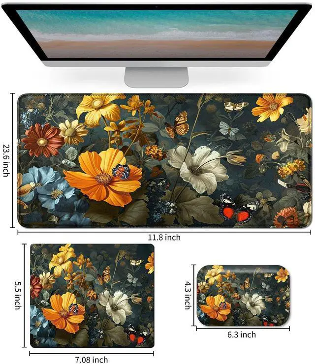 SetSIZE: Desk pad protector - 23.6 * 11.8 inch ( 60*30 cm) wrist rest Elbow support - 6.3 * 4.3 inch ( 16.2 * 11.2 cm)small mouse pad - 5 * 7 inch (14*18 cm)
