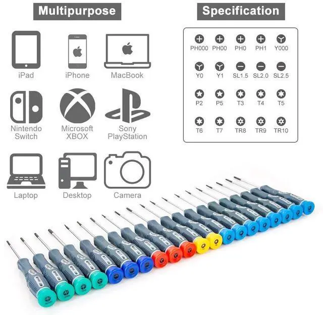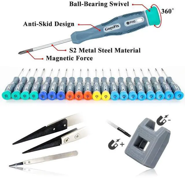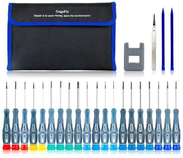 GogoFix Precision 20 Pieces Screwdriver with Tool Kits Compatible with Electronics, Computer, Laptop, Phone, Pad, Gaming Console, Camera Repair and Maintenance*Get all screwdrivers you need to disassemble, repair and reassemble your electronic devices with these advanced tool kit. Easy repair your devices in minutes. *Petty nice to have one at home or office, easy repair your devices in minutes. *ESD safe, Nylon tips are sturdy and great for working with delicate electronics. It's like having spudger-chopsticks. Nylon tip is replaceable. *Spudger can be used for prying, sliding, separating, and air guttering especially useful for prying glue-laden devices.