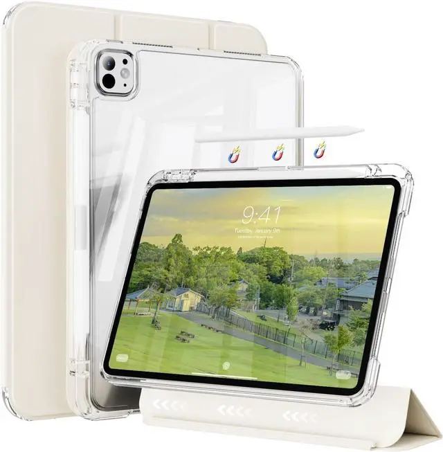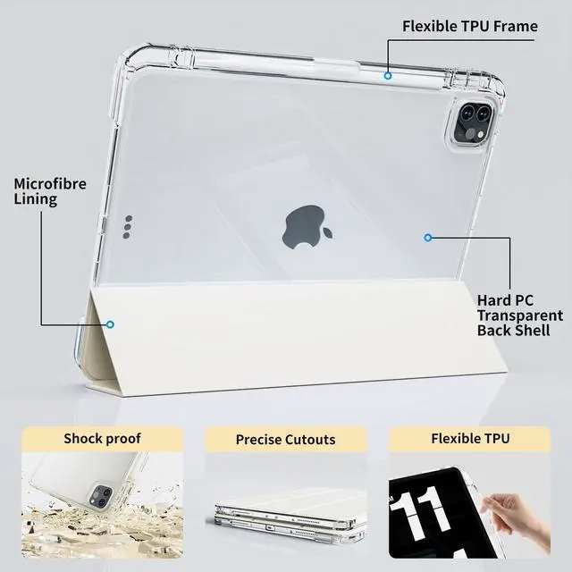 ^^ Full Protection: The transparent hard-shell back cover protects your iPad from shocks, drops, and impacts. The surface is soft and silky, providing a comfortable touch to the skin. You can clearly see the iPad logo through the back cover, while it showcases the original beauty of your iPad.