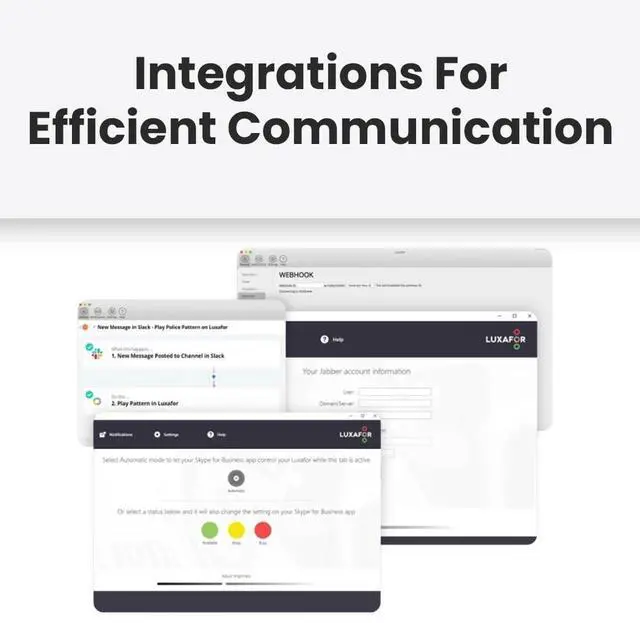 ^^ ADVANCED INTEGRATIONS FOR EFFICIENT SOLUTIONS Use Zapier to connect Luxafor with more than 1500 other apps to receive personalized and unique notifications on your own terms. Develop and add new integrations with uxafor Web API.