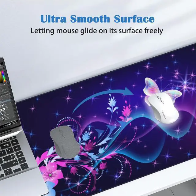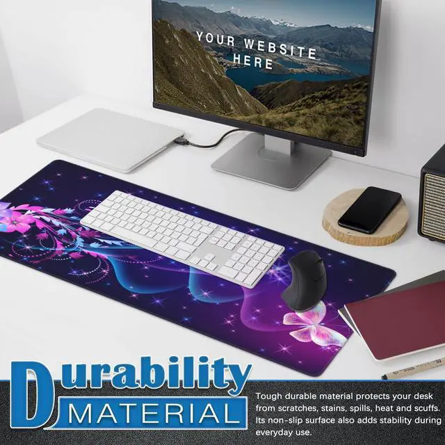 Large Mouse PadThe desk mouse pad measures 31.5 x 15.7 inch, with 2 mm thickness, big enough to accommodate your computer, laptop, keyboard and other desk items, and still leave plenty of space for your mouse to move all around. ^^ High qulity Workmanship and MaterialsThe mouse pad has delicate stitched edges, it is individually hand crafted with high quality warkmanship so not fray, deformation and degumming in prolonged use, relax to use. The computer mouse pad is thick and feels soft in the hand, which will provide comfortable support while typing, reading, writing and even sleepping.
