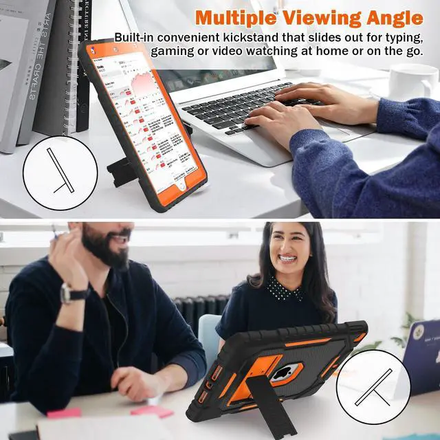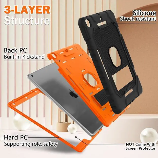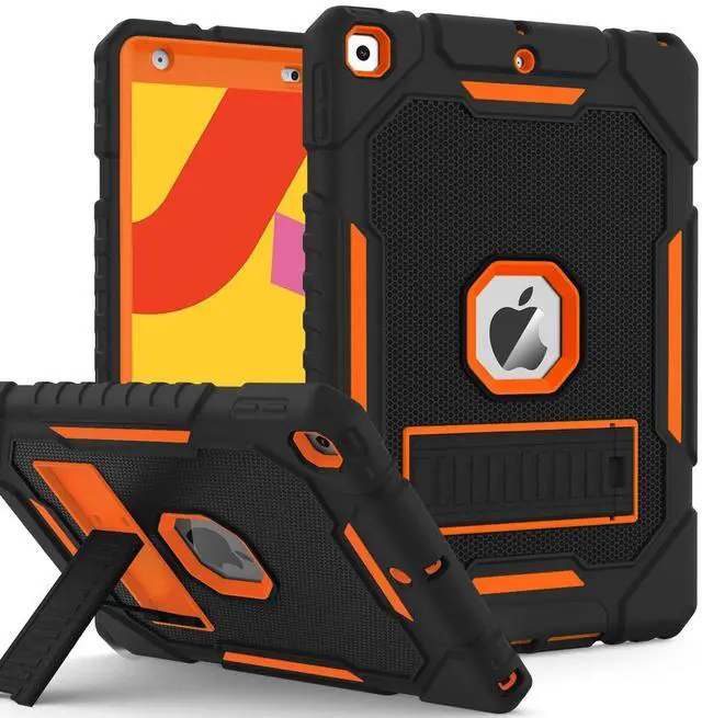 ZoneFoker Case for iPad 9th/8th/7th Generation 2021/2020/2019(10.2 inch), Heavy Duty Military Grade Shockproof Rugged Protective 10.2" Cover with Built-in Stand for iPad 9 8 7 Gen(Black+Orange)