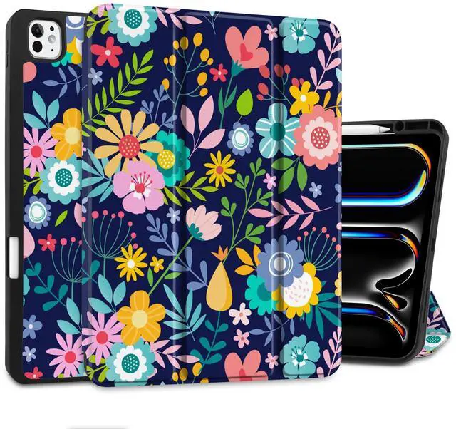 DONGKE Case for iPad Pro 13 inch (M5 2025 / M4 2024) [Built-in Pencil Holder] Ultra Slim PU Leather Trifold Stand Cover with Soft TPU Back, Auto Wake/Sleep - Florals