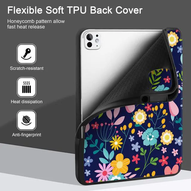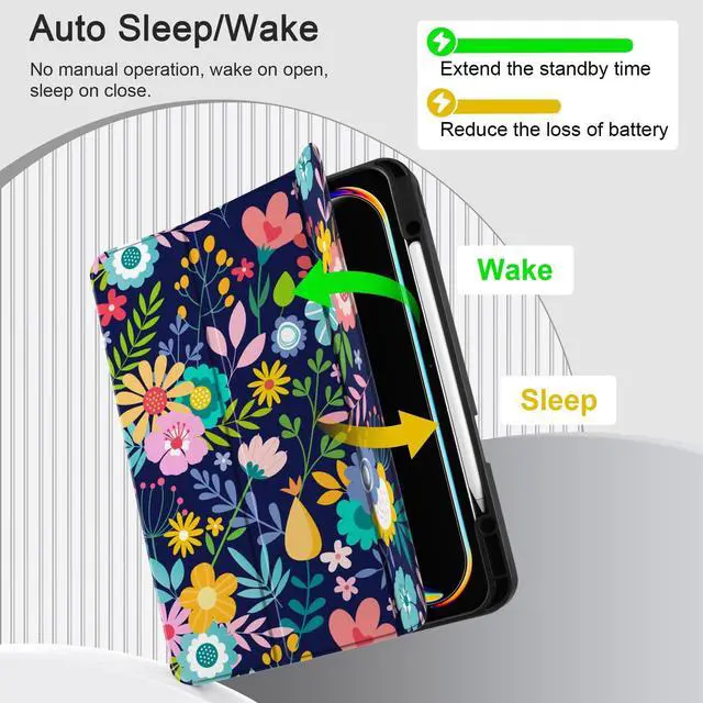 ^^ For Apple Pencil Charging Built-in Pencil holder and adapter slot, fully supports charging and pairing with Apple Pencil Pro and Pencil USB-C. Easily grab your Pencil or adapter whenever you need perfect for carrying both your iPad and Pencil together. (Case only, other accessories not included. ) ^^ Professional Design Inner honeycomb grid air-cushion pattern helps dissipate heat efficiently, improving shock absorption and extending iPad lifespan. The multi-layer painting process gives a sleek, refined look that resists fingerprints and daily wear. ^^ Convenient Function Features sensitive Auto Wake/Sleep function for power saving.