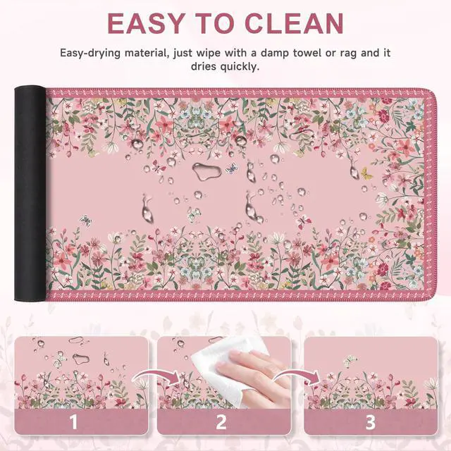 As a result, this premium keyboard and mouse mat protects your desktop from scratches, stains, heat and spills ^^ Easy to clean-To clean, all you need to do is wipe the surface of the waterproof desk mat with a damp wipe. The desk writing pad will air dry quickly in its natural state and is ready to use after air drying
