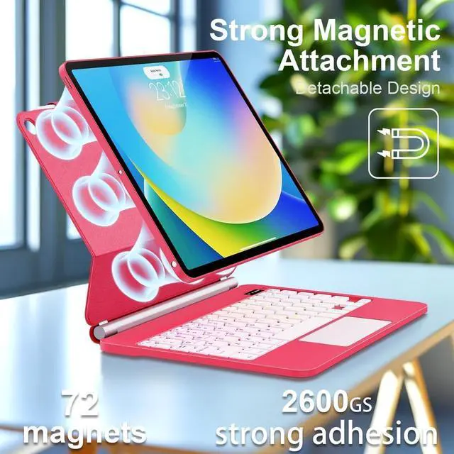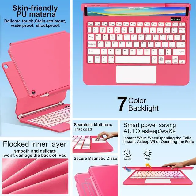 Compatibility: Compatible with iPad 9th Gen (2021, 10.2 inch) Models A2602 A2603 A2604 A2605; iPad 8th Gen (2020, 10.2 inch) Models A2270 A2428 A2429 A2430; iPad 7th Gen (2019, 10.2 inch) Models A2200 A2197 A2198; iPad Air 3rd Gen (2019, 10.5 inch) Models A2123 A2152 A2153 A2154; iPad Pro (2017, 10.5 inch) Models A1701 A1709 A1852. Please check your iPad model number on the back of your device (starting with "A") before purchasing to ensure compatibility. ^^ 7-Color Backlit Keyboard Case for iPad 10.2 9th/8th/7th GenFrom dawn to dusk, adapt effortlessly! Adjusting 7 backlight and 3 levels of brightness ensures clear visuals in every setting, enhancing your immersive experience. ^^ Floating Cantilever Stand & Multi-View Flexibility: The magic-style floating cantilever stand and strong magnetic attraction hold iPad firmly and stably in place like a laptop, the floating cantilever design allows you to easily adjust to your favorite viewing angle for typing or browsing. ^^ Multi-Touch Clickable Trackpad Keyboard for iPad 10.2: The Multi-Touch trackpad supports full-area press, swipe gestures, and media control. Its sensitivity can be adjusted via iPad settings, providing smooth, seamless operation ^^