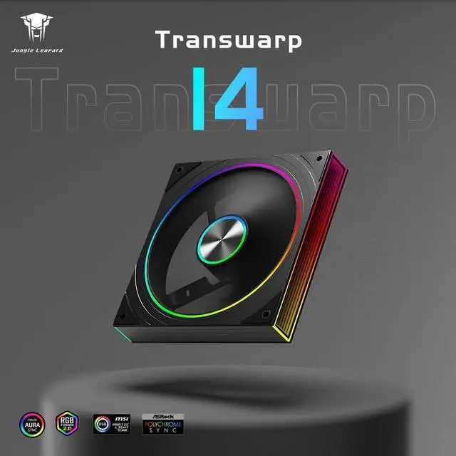 Jungle Leopard Transwarp 140mm RGB Case Fan, Dual side infinite mirror effect design + dual side pure aluminum brushed panel design. Light effect due to the texture perfect match. ^^ The new Jungle Leopard Transwarp 140mm RGB PC Fan is designed with a core CD pattern and ARGB ring light strips on the outer ring of the core, which further enhances the quality of the fan's lighting effect. ^^ High Performance Cooling Fan Automatic speed control of the motherboard through the 4PIN PWM fan cable interface, which can determine the speed according to the temperature of the motherboard, with a maximum speed of 600~1800RPM ^^ The shape and Angle of the fan blades are designed based on bionics.