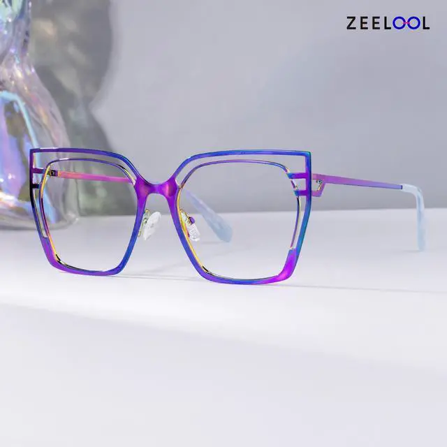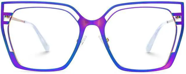 ^^ Innovative Hollow Design: The unique hollow frame design sets metal non-prescription eyewear apart, combining a trendy mixed-style aesthetic with a dual-color scheme.