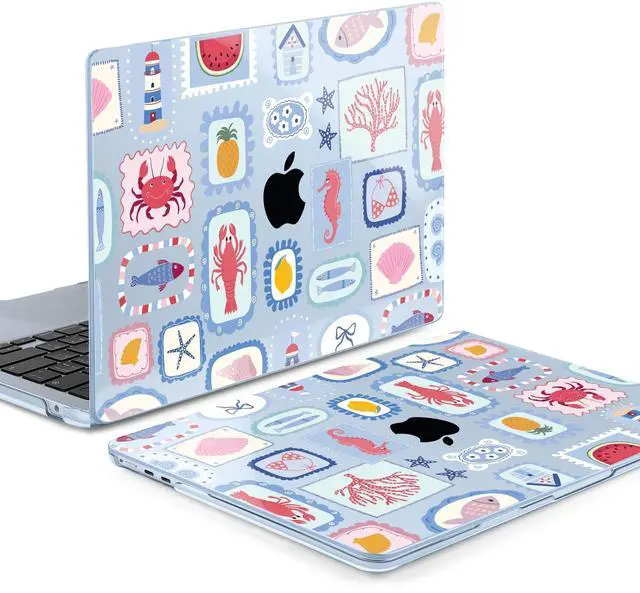 MEEgoodo Case for M4/M3/M2 MacBook Air 13.6 inch Case 2025 2024 2022, Fit Model A3240/A3113/A2681, Laptop Hard Shell with Keyboard Cover Compatible with MacBook Air 13 inch, Marine Stamps Pattern