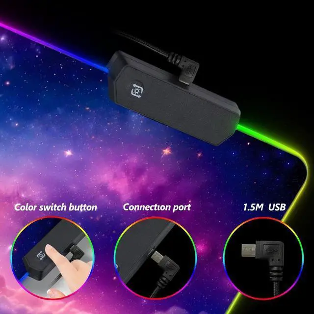 Included: 1 Large RGB Gaming Mouse Pad. 1 x cup coaster. 1 x Data Line.