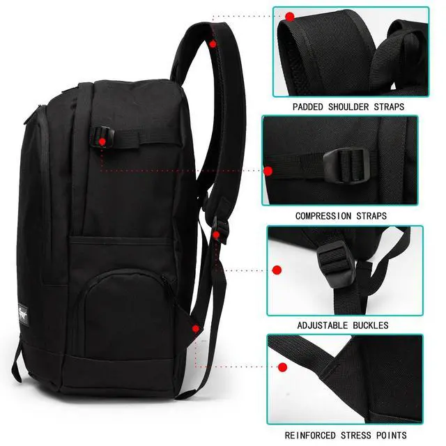 -Applicable People: Men, Women; College/University Campus Students, High school, Middle school, Elementary, Primary school boys & girls; Parents, ect. )-Comfort with featuring ergonomic designed adjustable padded reinforced shoulder straps, makes the backpack all day use as a breeze. -High-quality, strong, long lasting nylon fabric builds our sturdy and solid backpack with great performance on water-resistance, anti- striking and anti-scratching. -Twin metal zippers with fabric flaps over to keep water out of the backpack and last much longer than plastic ones. Easy at opening and closing the backpack. Double stitching at stress points adds valuable security to seams, handles, and straps, enhancing the durability. And additional top handle provides extra help while lifting or moving the backpack.