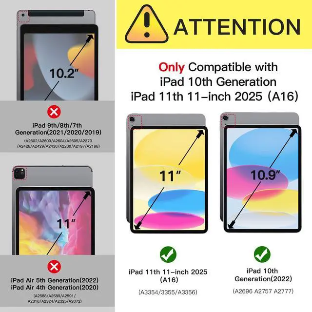 The case only designed for iPad 11th generation 11 inch Case A16 2025, iPad 10th generation 2022 released 10.9 Inch.