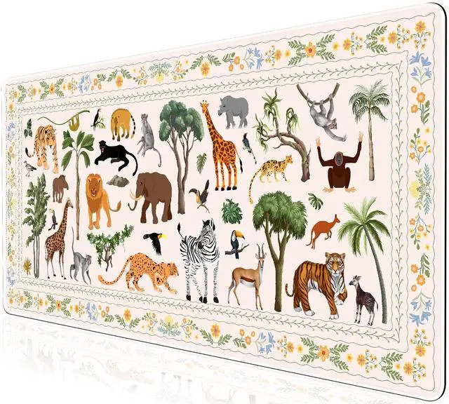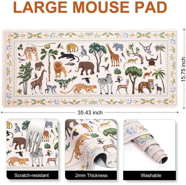 Pad Size: XXL mouse pad measures 35.4" x 15.7", this cute wild animals desktop mat provides ample space for your mouse, gaming keyboard, and other desktop essentials. Its large size of desk cover mat keeps your workspace neat and organized, perfect for both gaming and office use ^^