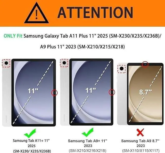 [Compatibility] Specially designed for Samsung Galaxy Tab A11+/A11 Plus 2025(Model: SM-X310/SM-X315 LTE/SM-X236), A9+/A9 Plus 11