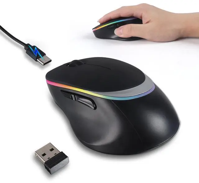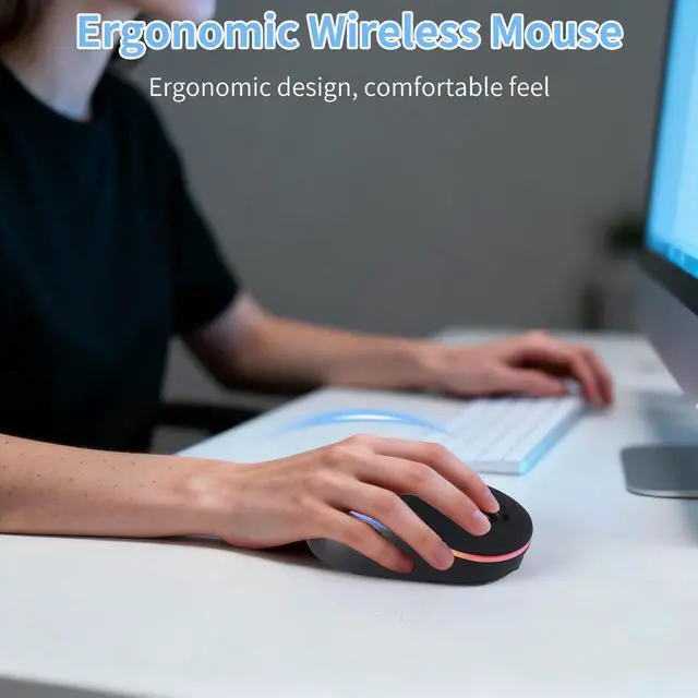 You can freely choose the wireless mouse with side buttons movement speed to reduce muscle fatigue and enhance work efficiency. Whether it's handling spreadsheets, browsing the web, or playing games, this wireless computer mouse for laptop ensures the smoothness and responsiveness of operations. This illuminated wireless mouse features an ergonomic, streamlined design, along with a lightweight body and soft-touch finish for a secure, comfortable grip. This silent-click USB bluetooth wireless mouse ensures quiet clicking and scrolling, minimizing distractions, so you don't have to worry about disturbing others. This portable wireless mouse boasts a streamlined design with a matte finish, making it a stylish addition to modern devices.