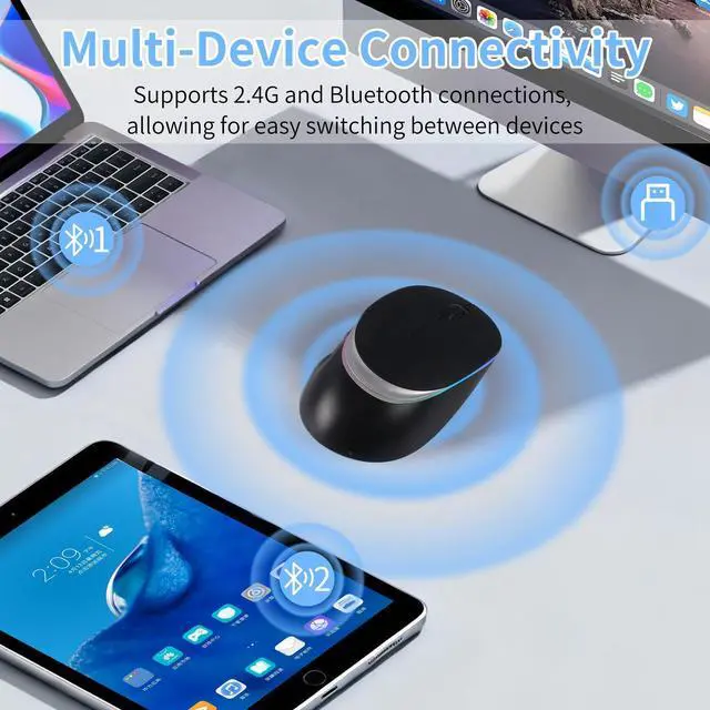 Bluetooth Wireless MouseThe laptop wireless mouse (in Bluetooth mode) can connect to one device via BT 5.2 / 3.0, while the wireless mouse mode connects to another device via a 2.4G USB receiver. No driver installation is required, and it is plug-and-play. Wireless/Bluetooth technology provides a strong and reliable connection, enabling fast data transmission with no lag or interruptions, and an effective range of up to 10 meters (33 feet). This wireless bluetooth computer mouse offers 3 adjustable DPI resolutions (800/1200/1600). It uses optical tracking technology and has a higher sensitivity than standard optical mice, enabling smooth and precise tracking on various surfaces.