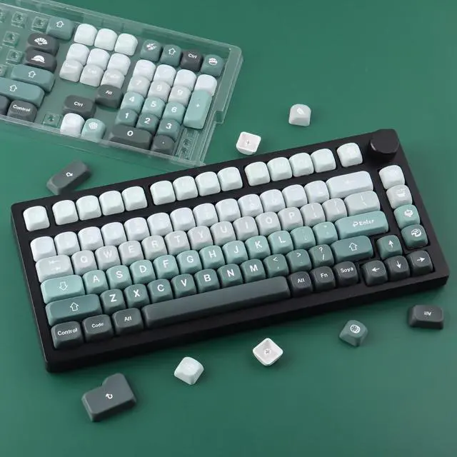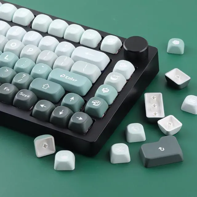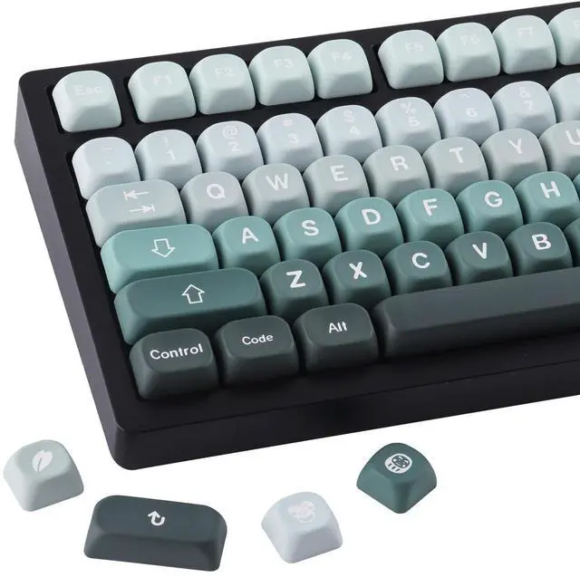 Minimalist DesignKeycaps are designed in forest green-gradient, unique and with a minimalist style, the vibrant green color makes your mechanical keyboard stand out ^^ Durable PBTThe keycap is made of molded double-layer pbt material pressed and will not fall off easily, due to the special production process of the keycap, so the surface of the keycap will appear in the injection molding holes, does not belong to the quality problem ^^ MOA ProfileThis custom PBT keycap set features MOA profile design that provides a more comfortable height and ergonomic curvature when typing, designed for the ultimate typing experience, ensuring long term comfort without fatigue and durability when working or gaming, and the keycaps feel great to the touch, so you can enjoy every click ^^ CompatibilityThe custom keycaps contains 166 keys, fit most 60%/65%/75%/80%/96%/100% (61/64/68/75/84/87/96/980/104/108) US layout mechanical keyboard ^^ Warm TipsYou can get 1 x1321 keycap set (with key puller) with 92 days worry-free warranty.