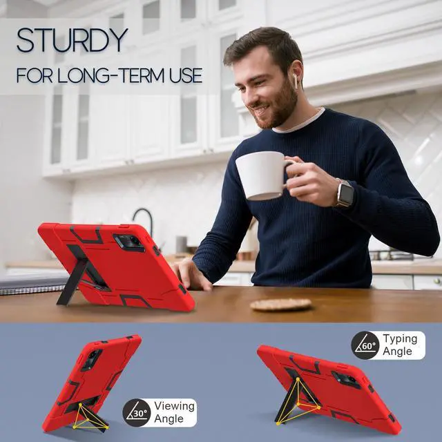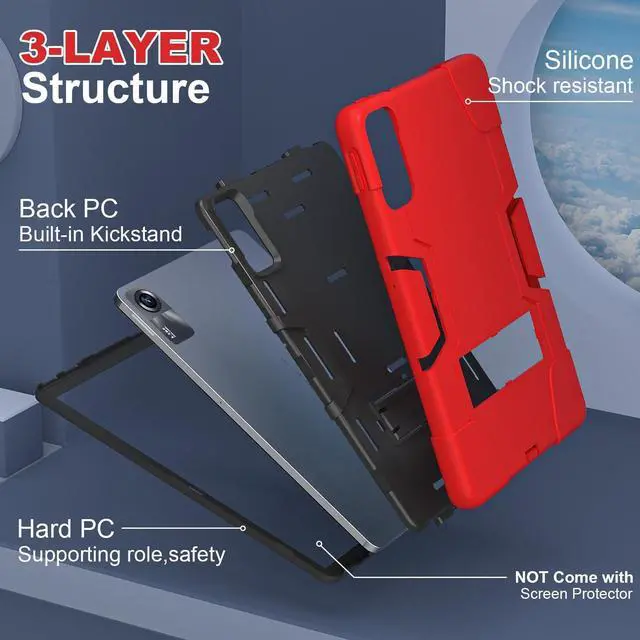 Doemoil case Cover for Xiaomi Redmi Pad SE 11 inch,Slim Heavy Duty Shockproof Rugged Protective Case with Built-in Stand for Redmi Pad SE 11 2023 (Black/Red)
