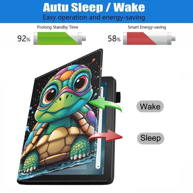 Perfectly decor your tablet, Beauty and function come together. Made of High end PU leather, features shockproof, protective smooth outer casing and sturdy exterior with soft microfiber interior keeps your tablet screen safe. Convenient multi viewing kickstand for watching movie or typing. Great for holding in landscape mode to watch videos. Designed with 3 delicate card slots inside for you to carry your necessary cards. There is a flexible pencil holder at the edge of the shell for keeping your stylus in place (Stylus is not included). Provide auto sleep/wake, Open the case to wake up and close the case to shut off, Saved power.