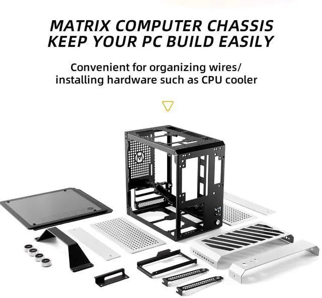 Advanced Cooling Multi-fan support (top: 8cm2, rear: 9cm1, bottom: 12cm1) for optimized airflow. ^^ Premium Build & Modularity Aluminum-steel hybrid frame, detachable panels, and tool-free installation for DIY flexibility. ^^ Expandable & User-Friendly Dual 2.5" SSD mounts, pre-installed dust filters, and a detailed screw kit for hassle-free assembly.