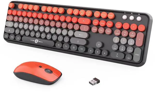 Wireless Keyboard Mouse Combo,104 Round Keys Cute Colorful Keyboard with Retro Typewriter Style,Letton Full Size Keyboard with Number Pad&Mouse with 3 DPI for PC Mac Laptop Computer Windows-Orange