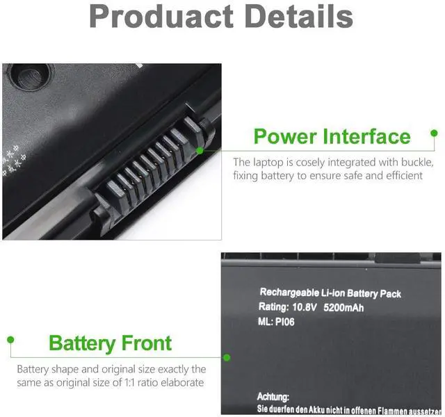 Part Number: PI06 P106 PI06XL P109HATNN-LB4N HSTNN-LB40 HSTNN-YB40 HSTNN-YB4N710416-001 710417-001 709988-421 709988-541 709988-851 709989-421Compatible with the below