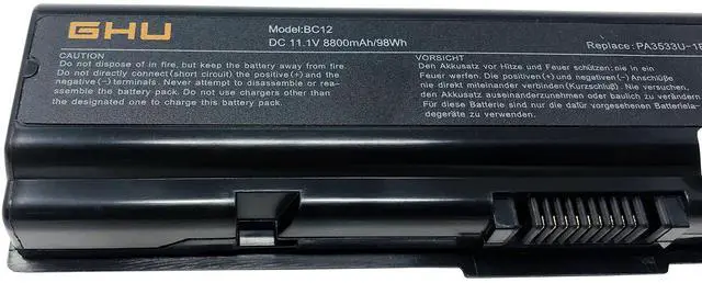 Battery: This GHU Battery for toshiba satellite a205 battery and toshiba satellite l505 battery is designed with a premium 12 cell 98Wh capacity, offering long-lasting power for your Toshiba laptop. Ideal as a replacement or spare for your toshiba laptop battery pa3534u, battery for toshiba l505, or battery for toshiba satellite laptop.