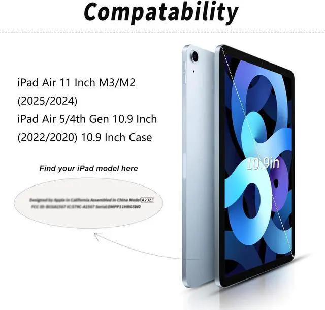 Compatibility ModelThis iPad case with keyboard is designed for iPad Air 11 Inch M3/M2 (2025/2024), iPad Air 5/4th Gen (2022/2020) 10.9 Inch (