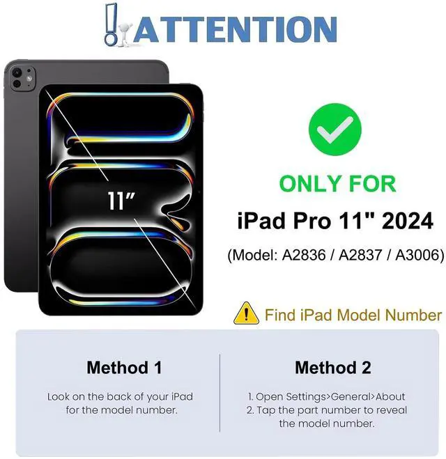 Number: A2836/A2837/A3006), not compatible with any other iPad Pro 11 Inch devices. Please check back bottom of your iPad Pro to find the model number.