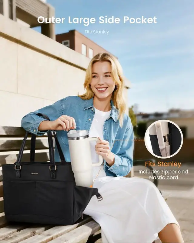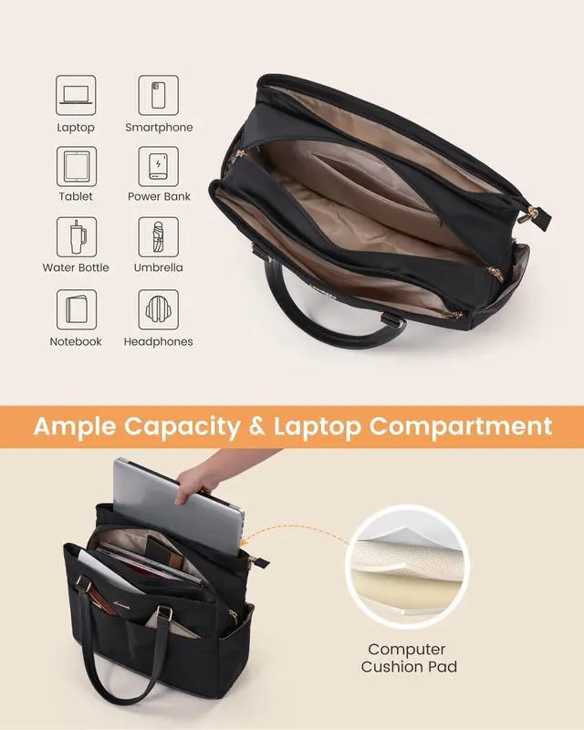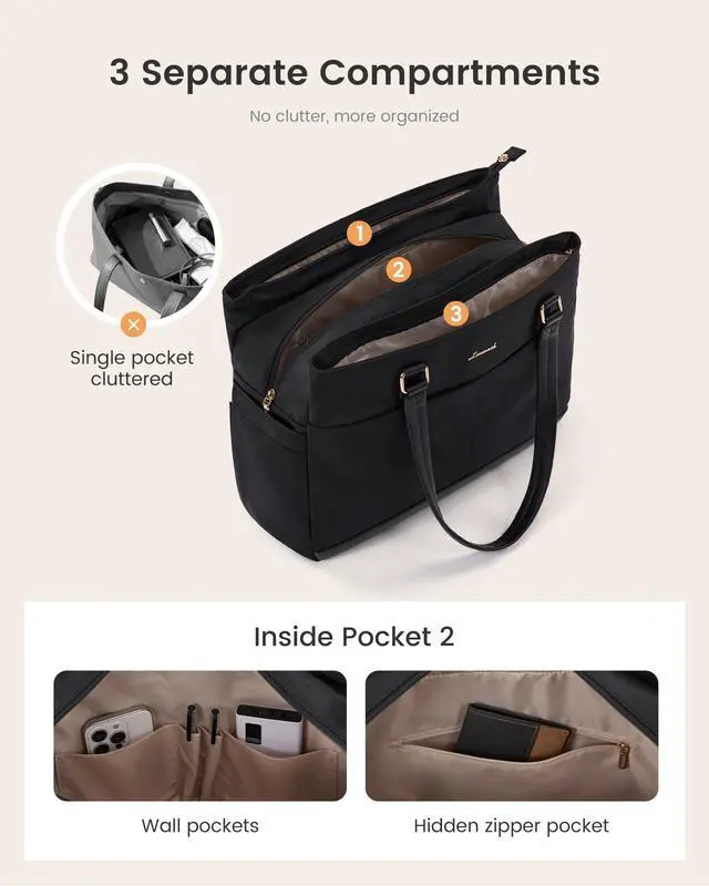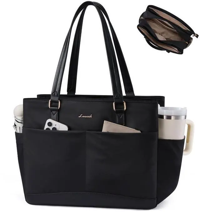 DescriptionLOVEVOOK Laptop Tote Bag for Women with 3 Separate Pockets, Work Bags with Large Cup Holder, Computer Bag Briefcase for