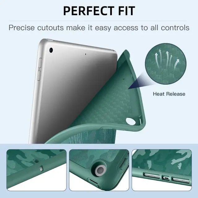 Mastten Compatible with iPad 9th/8th/7th Generation Case, for iPad 10.2 Inch Case with Pencil Holder, TPU Smart Stand Back Cover 2021/2020/2019, Auto Wake/Sleep, Green Camo