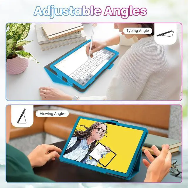 Compatible Fit for Wacom MovinkPad 11Made to fit most features of the MovinkPad 11 11" tablet, allowing smooth access to frequently used ports and controls ^^ Built-In Hand Strap for Easy GripElastic hand strap offers a secure, one-handed holdideal for reading, presenting, or holding your tablet on the go ^^ Dual-Angle