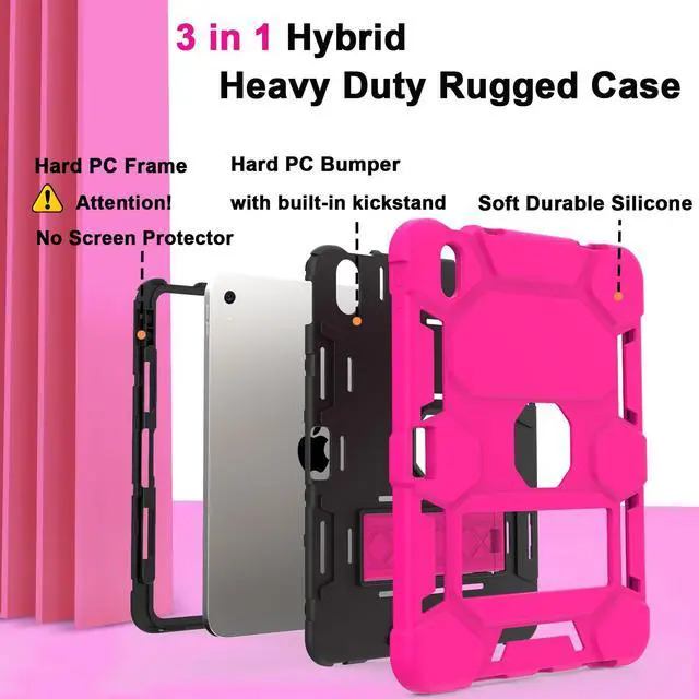 NOTE: This case does NOT include a built-in screen protector. ^^ Lager&Harder KickstandThis ipad 11th generation case kickstand features a dual-angle viewing with a reinforced, larger design for stronger stability, ensuring your iPad stays secure wherever you want to use it. Meanwhile, you can simply pop out the kickstand vertically to use it as a handle. This allows you to lift and transport the device effortlessly whenever required. ^^ Efficient Protection The 3-in-1 ipad case 11th generation has successfully passed the military collision test. It is made of high-quality silicone shell and durable hard PC back and front frame, which can effectively mitigates damage to your iPad caused by high-altitude drops, accidental falls, violent collisions. ^^ Precise Cutouts All controls of ipad a16 case are easily accessible for all iPad functions without removing your iPad from the case. The raised edges keep the screen and camera elevated to prevent scratches on surfaces. And the pen holder design provides a secure place for your pens to rest. ^^ Tester SayThe testers found the iPad case to be exceptionally durable, they appreciated the availability of various colors.