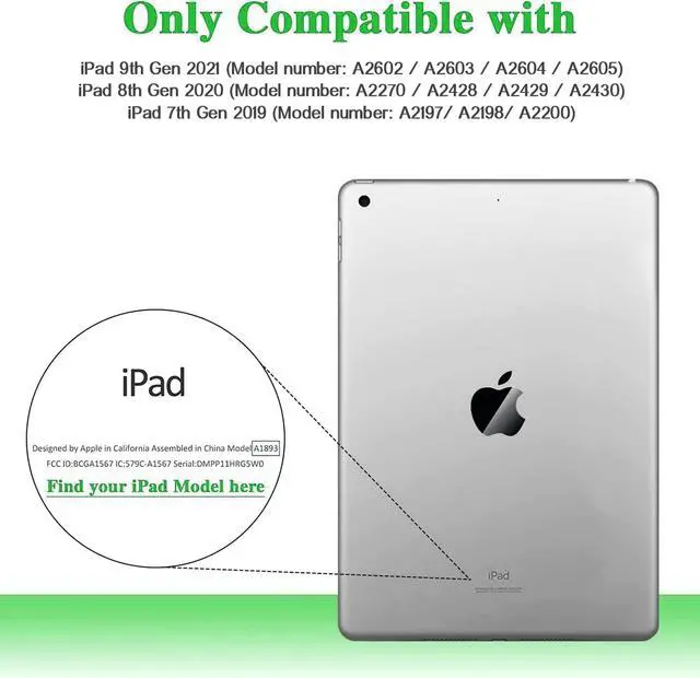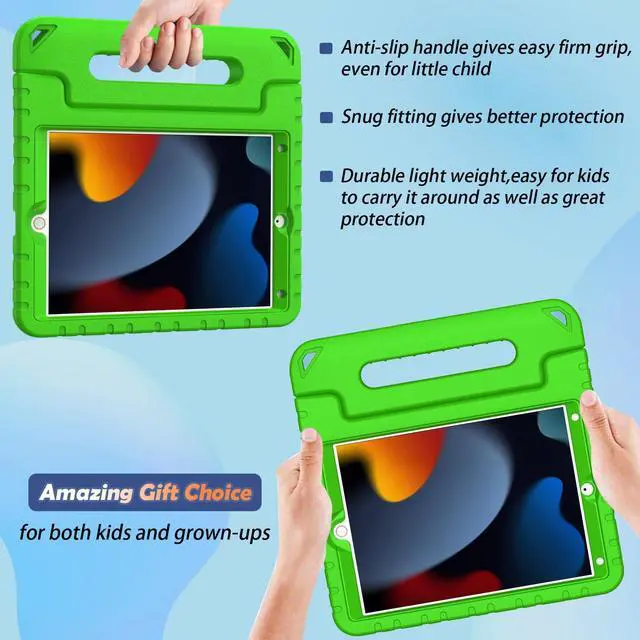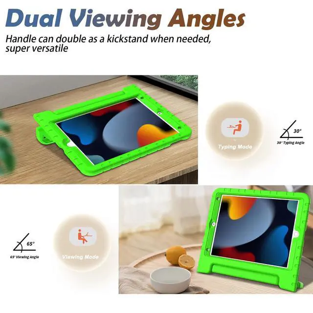 iPad Case 10.2 InchExclusively designed for iPad 9th generation 2021 (model number: A2602, A2603, A2604, A2605), iPad 8th generation 2020 (model number: A2428, A2429, A2430, A2270) and iPad 7th generation 2019 (model number: A2197, A2200, A2198). This case will NOT fit ANY other iPad models. Please check your iPad model before purchase. ^^ Dual Angle ViewingiPad 10.2 case with stand, allows viewing in different angles needed. Ideal for streaming a video, face time, work from home. ^^ Convertible Handle StandiPad 10.2 case 9th/ 8th/ 7th generation designed with a large convertible handle, easy to grip, it can be converted into a stand anytime needed. Super convenient. ^^ Precise Cutouts Easy AccessCase for iPad 9th/ 8th/ 7th generation with accurate cutouts ensure clear full access to all buttons, ports, sensors, speakers and cameras. ^^ Durable Kid-friendlyLight Weight yet durable child-friendly iPad 9th generation case, made of EVA foam (Ethylene Vinyl Acetate) material, provides great protection for your iPad 10.2 inch. Lovely gift choice for family and friends!