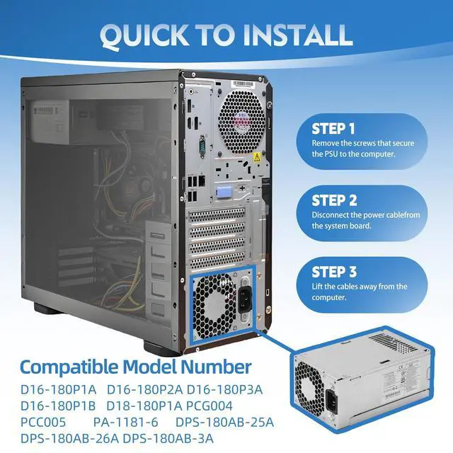 Compatible computer mode: D16-180P2A L08261-002 180W Power Supply For HP Prodesk 280 282 285 288 400 480 600 800 Pro G3 G4Compatible