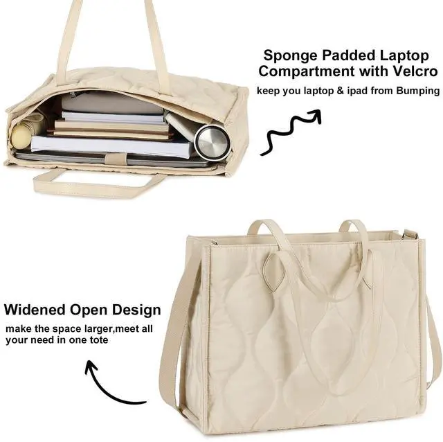 Fashion women work bag: With a simple and classic design, the canvas tote bag will go with all your daily outings. Separate multiple pockets to hold all your personal stuff. 1 main roomy pocket with no zipper suitable for A4 documents, 1 computer compartment for your 15.6 inch laptop or ipad, 2 small pockets for your cell phones, or cards. Suitable as teacher bag, work totes purse, business handbag, brifecase.