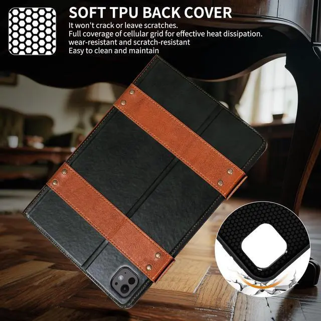[Compatibility]:This leather protective case designed for ipad pro m4/m5 (5th/6th generation) 11-inch 2024/2025 (model:A2836/A2837/A3006/A3357/A3358/A3359).Note:It will not be compatible with other ipad models,please check the back bottom of your ipad to find the model number.No built-in pen holder.