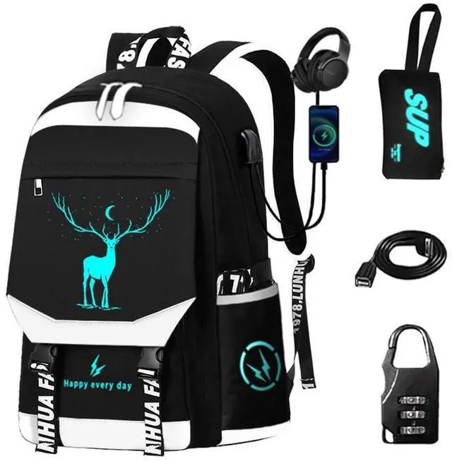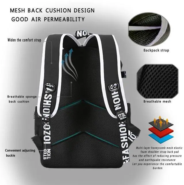 USB PORT DESIGN: anime backpack charging cable inside,this usb backpack offers you a more convenient way to charge your phone while walking.you can listen to your favorite music on the go hands-free.No power-ups