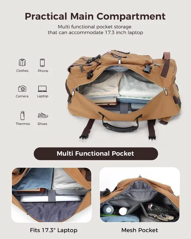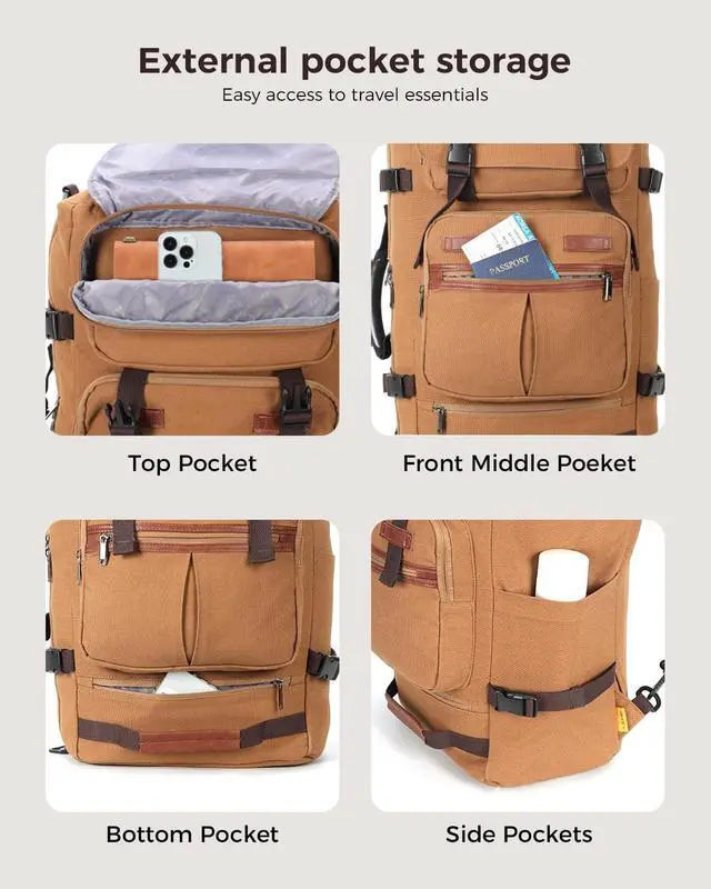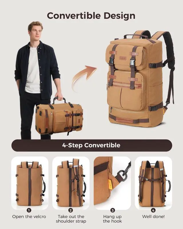 Basic Protection: Luggage straps attach to suitcases for hands-free carrying; a bottom guard cuts ground friction, better shielding your gear and boosting the canvas backpack durability ^^