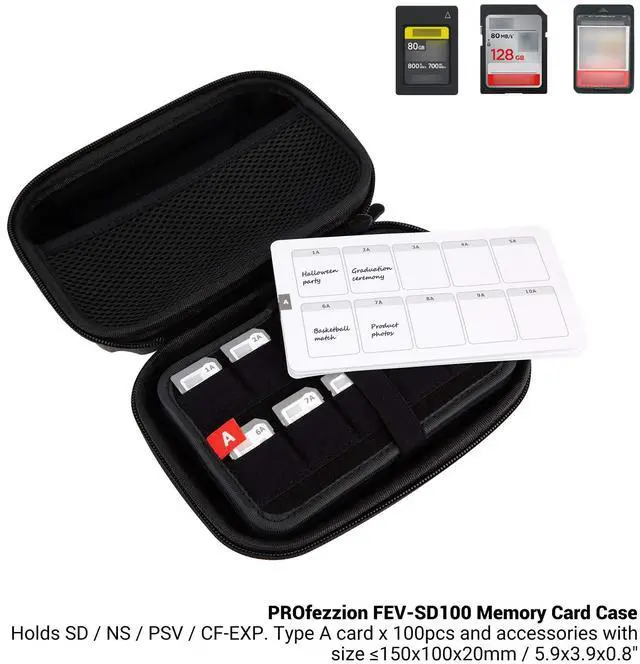 [Ultra-High Capacity]- The memory card holder adopts a detachable design and removable SD card storage allow you to store 100 SD cards / Nintendo Switch Game cards / Sony PS Vita cards / CFexpress Type A cards. A total of 100 slots. It was designed to hold up SD / SDXC / SDHC / SecureDigital / NS / PSV / CFexpress Type A ^^ [TOP Materials for Anti-Shock & Weatherproof]- This SD card holder case made from sturdy & durable EVA material offering excellent protection. The elastic pockets have the characteristic of shock absorption, which can greatly reduce shock and impact to better protect your memory cards.