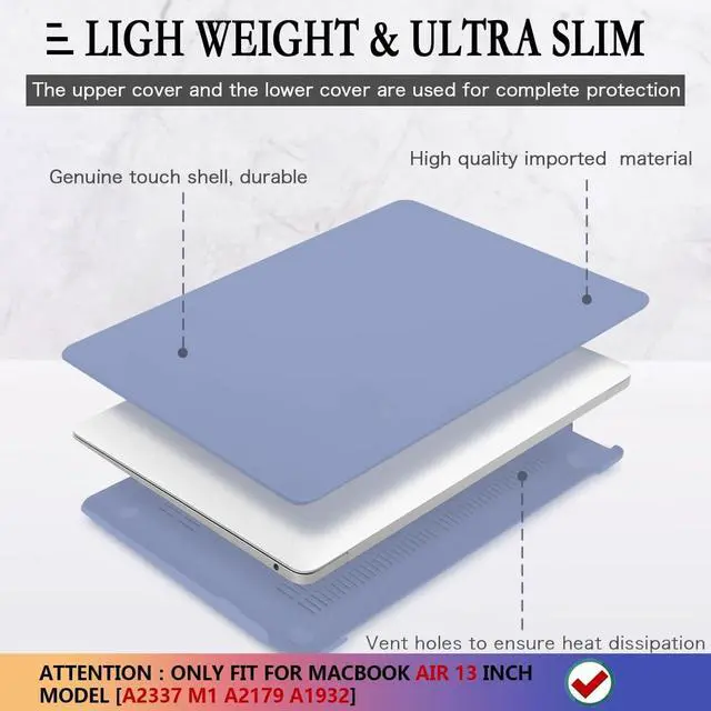 Only Compatible with MacBook Air 13 inch M1 Model A2337/ A2179/ A1932 Release 2018-2021. ^^ Please kindly check the model number "AXXXX" on the back of the laptop before purchase. ^^ NO Cut Out design, comprehensive protection for laptops.